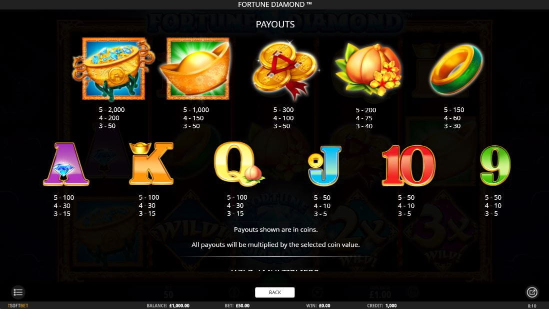 Wer den Fortune Diamond Automat vor dem Einsatz von Echtgeld kostenlos ausprobieren möchte, kann den Demo-Modus hier auf der Webseite oder auch in allen iSoftBet Online Casinos nutzen. Im Demo-Modus kann übrigens auch die Pay-Tabelle mit den möglichen Liniengewinnen eingesehen werden.