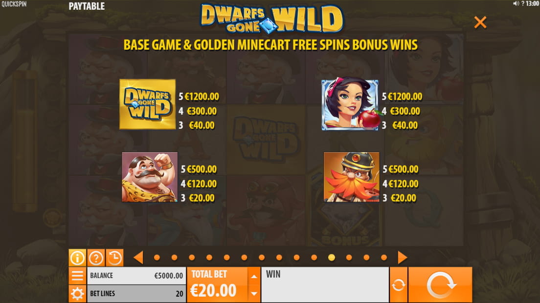 Der Dwarfs Gone Wild Online Slot kann mobil auf dem Handy oder auch gratis in einer Demo-Version gespielt werden. Neue Spieler im Quickspin Casino sollten nicht vergessen, sich den Willkommensbonus und Freispiele zu holen.