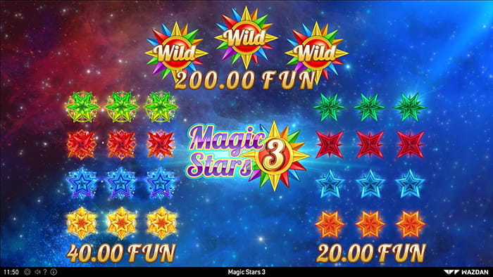 Das Spielprinzip des Magic Stars 3 Slots ist einfach und leicht verständlich. Entsprechend geht auch die Auszahlung der Gewinne vonstatten: Gewinne werden abgerechnet, sobald auf den Walzen drei Glückssymbole landen. Wie viel an Gewinn auszahlt wird, ist abhängig vom Einsatz. Spieler können zehn Cent einsetzen, aber auch 100 Euro pro Dreh investieren. Wer einen Casino Bonus angenommen hat, kann ihn in jedem beten Wazdan Casino einsetzen und so mit dem Game Play die Umsatzbedingungen erfüllen.